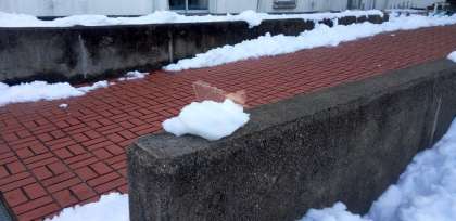 登校してきた生徒が地面の氷を上手にはがして持ってきました。玄関スロープ脇に置いた様子は、まるで芸術品です。溶けてしまえば、水になって大地にしみこみますが、私達の心の中にもしみこむことで温かい気持ちになりますね。