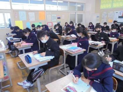 来週の学年末考査に向けて、生徒一人一人が予想問題を作りました。