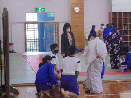 1年生の家庭科で浴衣の着装の授業を行いました。