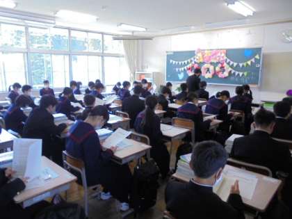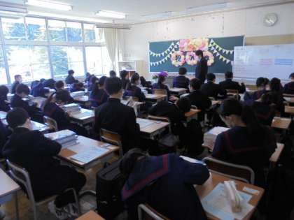 桜が華やかに咲き誇る本日、162名の新入生が入学しました。はつらつと初々しい姿で無事、式を終えることができました。その後の学級では、担任の先生のお話を聞き、来週からの中学校生活に胸を弾ませていました。