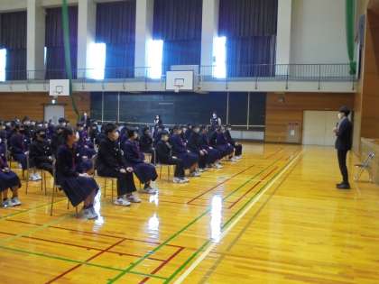 学校生活のルールや、学習について確認しました。特に進路に関する話題には、関心を持って真剣に聞き入る様子が見られました。