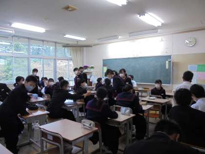 1〜5時間目は授業で緊張モードだったので、学活では、担任の先生と少しリラックスした様子も見られます。