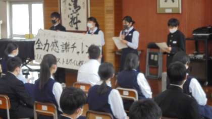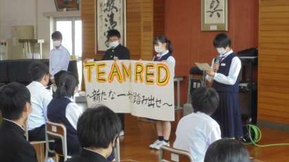 「社会に学ぶ『14歳の挑戦』」についての事前集会と、学年企画委員による学年集会が行われ、スローガンや活動内容が紹介されました。集会の企画・運営・準備をしてくれた14歳の挑戦実行委員の皆さん、学年企画委員の皆さん、ありがとう。