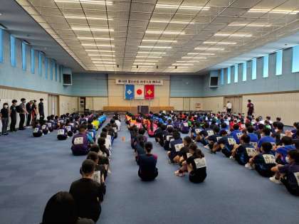 総合開会式が卓球競技の会場で行われました。 引き続き、卓球競技が開始されています。