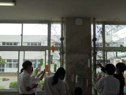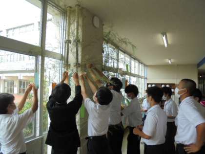 今日の学活では七夕前日ということで、短冊に自分の願い事を書き、笹の葉に掲示しました。お互いの夢や願いを見合いながら、笑顔が溢れる学活となりました。
