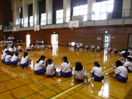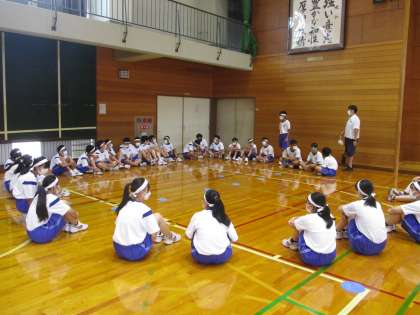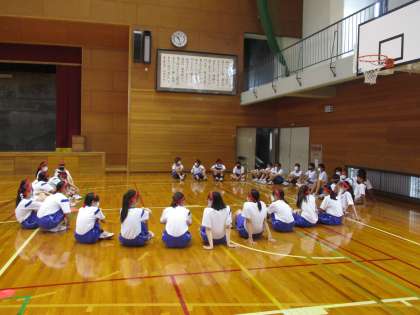 体育大会に向けて学年競技の練習を行っています。作戦会議で、様々な戦法を練っている様子です。