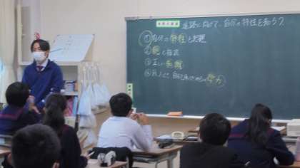 5限は大澤先生から、ご自身の中学生時代のことを交えながら中学生の進路選択に必要なことについてお話がありました。真剣に聞いている姿から、関心が高いことが分かり、安心しました。