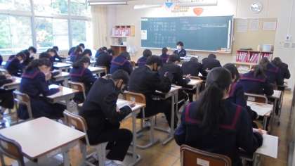 真剣に取り組む姿が見られました。今までに学習した内容の確認です。返却されたテストの見直しまでしっかりと行いましょう。