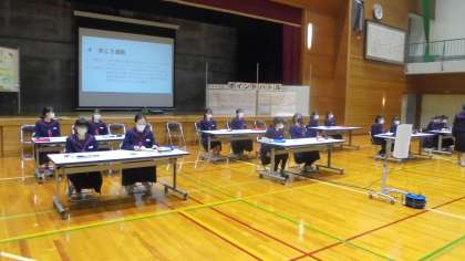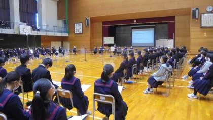 新生徒会による生徒総会が行われ、執行部や各実践部からの議題についてたくさんの質問や意見が発言されていました。素晴らしい大沢野中学校となるように、協力していきましょう。