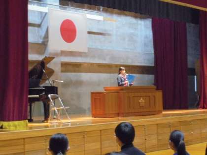 年が明けて今日から3学期が始まりました。その3学期の始業式では、1年生の意見発表があり、2年生に向けて堂々たる発表を行いました。