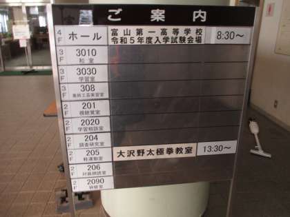 富山第一高校の一般入試は大沢野生涯学習センターで行われています。
