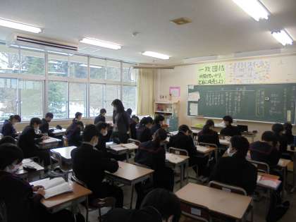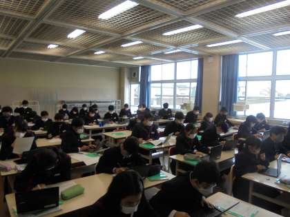 2組の美術では、パソコンを使ってデザインの案を考えています。