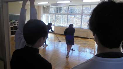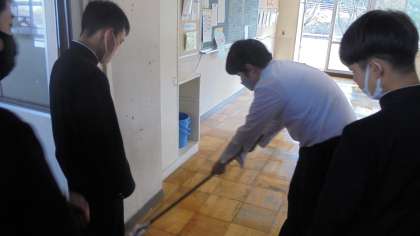 ワックスがけが、美化実践部やボランティアの生徒を中心に行われました。今学期はもう僅かです。1年間お世話になった教室を隅々まで輝かせました。