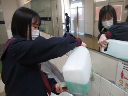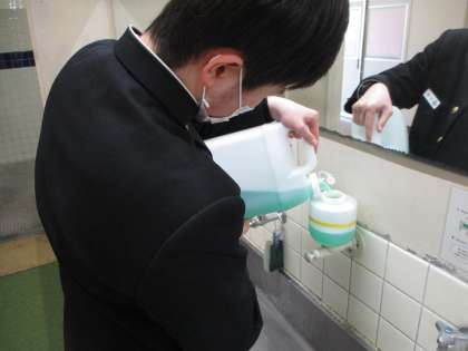 3年生は明日卒業なので、本日最後のシャボネット補充を行いました。