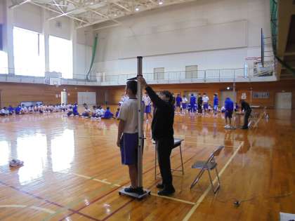 1時間目に全校一斉に身体測定を行いました。身長、体重、視力を測定しました。測定結果を受けて、日常生活(食事、睡眠、運動等)を見直すきっかけにしたいものです。