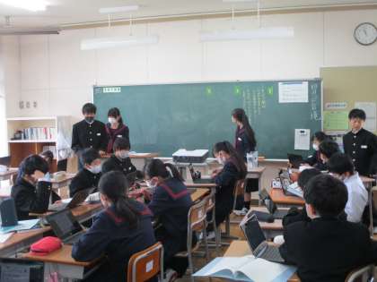第1回生徒議会・実践部会で話し合われた内容を各学級で代議員、実践部員が説明し、確認しました。よりよい生徒会の活動になるように生徒が主体となって話合いが行われました。