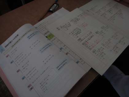途中計算まで書いています。大事なところや〇付けを赤で行っています(下)