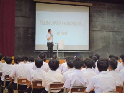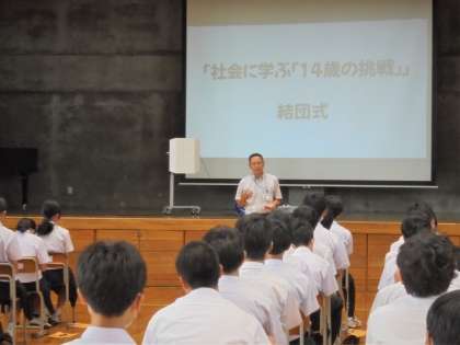 来週7月3日(月)〜7日(金)に大沢野地区中心で実施する、「社会に学ぶ『14歳の挑戦』」の結団式を行いました。