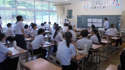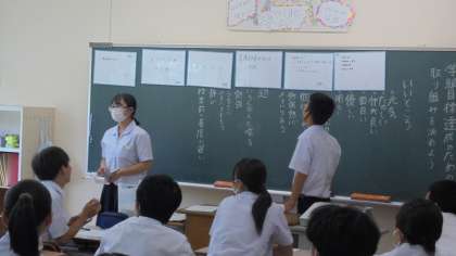学年企画担当の生徒を中止に「学級目標達成のための取組」について各クラスで話合いを行いました。本年度の学級をよりよくするための方法にてついて様々な意見が発言されていました。