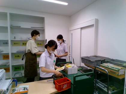 先日リニューアルした大沢野図書館では、2名の生徒が活動しています。他地域の市立図書館に移動する書籍の仕分けをしています。間違えないように集中して作業していました。