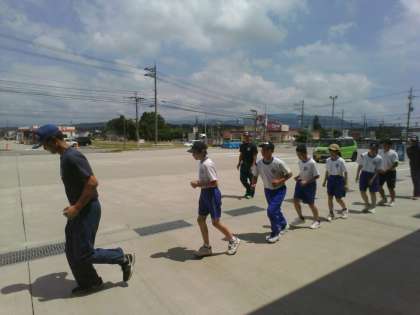 大沢野消防署では、午後から訓練を体験していました。掛け声を出しながらランニングやサーキットに取り組み、必死に頑張る姿を見ることができました。