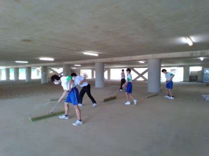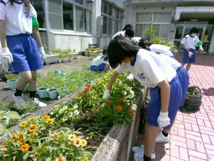 大沢野中学校にて、花壇の整備やピロティの清掃を行いました。