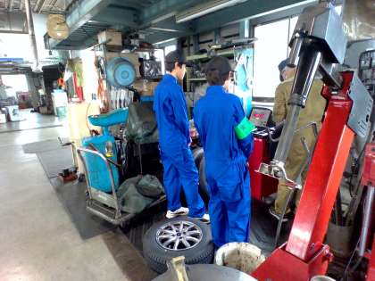 指導ボランティアの方に教わりながら、タイヤの取り付け作業を行いました。