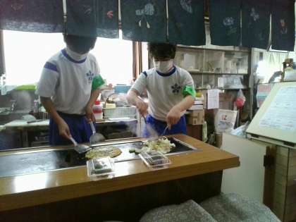 焼きそばやお好み焼きを一生懸命作っていました。