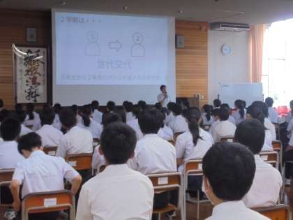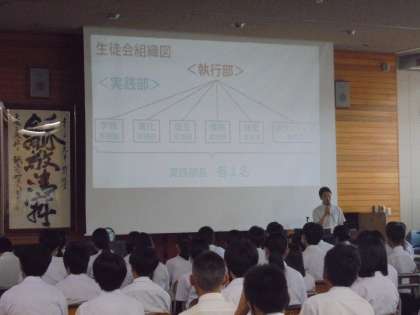 第42期生徒会発足へ向けて学年集会が行われました。生徒は真剣な表情で話を聞いていました。たくさんの熱意ある立候補者が出てくれることを期待します!