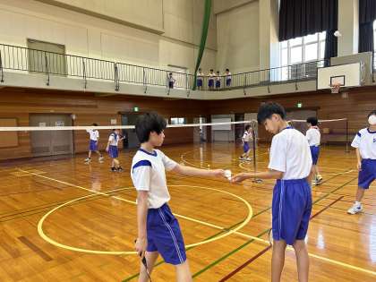 7月22日(土)男子バドミントン部の活動 公開日 2023/07/23 更新日 2023/07/23 部活動について 本日は休日初の1、2年生合同でトレーニングでした。 2年生が1年生に対して積極的にコーチングしていました。