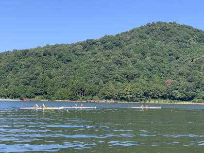 男子Aチームは2組1位で決勝へ。Bチームも3組2位で順位決定戦に進みました。どちらも最後のレースです。