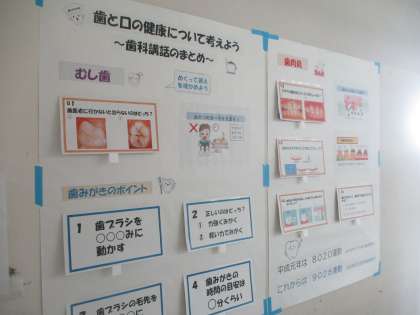 7月5日(水)に行われた「歯科講話」のまとめが1学年フロアに掲示されています。