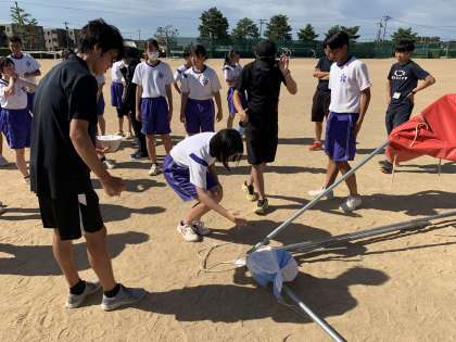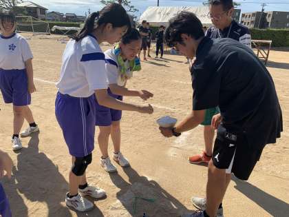 今日の放課後、体育大会の前日準備終了後に校長先生、3学年の先生方、実行委員、各団の団長で体育大会の成功と安全を祈願してグラウンドのお清めを行いました。