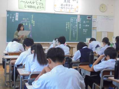 国語では「字のない葉書」を学習しています。(写真上:24H)