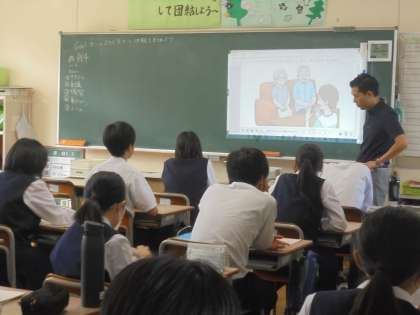英語科では「ホームステイ先での体験をまとめよう」を題材にして学習を進めていました。(写真下:22H)