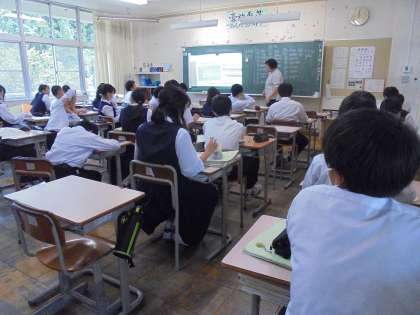 写真上:14H 英語 ンダンゴ先生に1日の様子を伝えよう