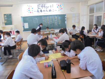 今日の学活の時間に各クラスで後期の学級組織、実践部員を決めました。
