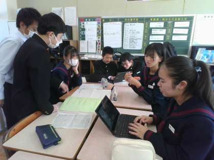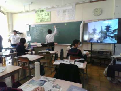 理科、社会科、総合的な学習の時間の授業の様子です。総合的な学習の時間では、11月の金沢校外学習の班別のルートについて話し合っていました。