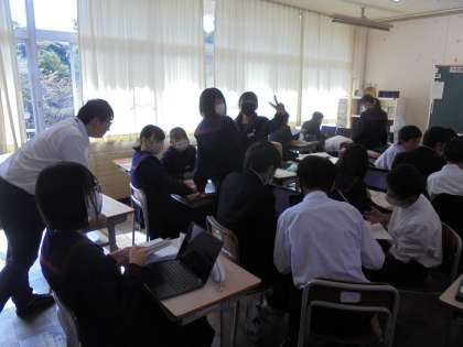 推しの王子について、クロムブックで調べたり、班の人に紹介し合ったりしています。