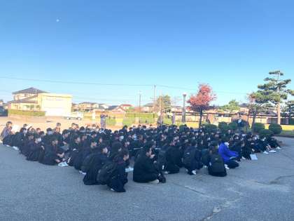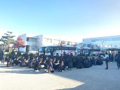 晴天の下、2学年は金沢市内へ校外学習にし出発しました。班別学習や体験学習を楽しみにしているようです。
