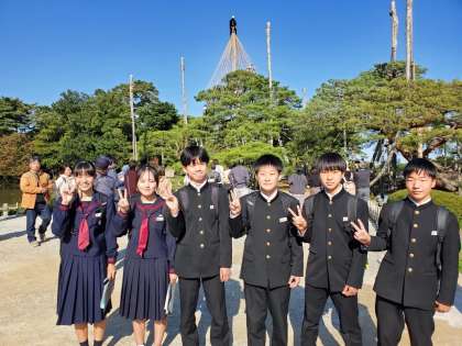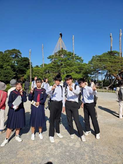 雪吊りが見れるのは1年間に今日だけだったようで、よいタイミングで来ることができました。木のてっぺんに職人さんが居ます。