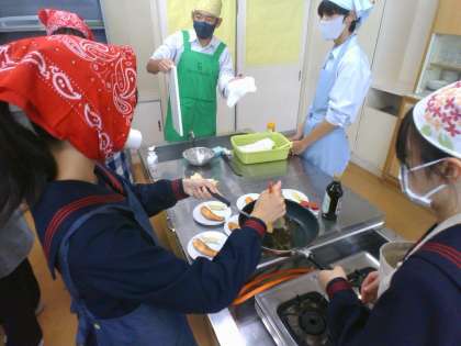 鮭のムニエルの調理実習を行いました。みんな香ばしくバターの風味豊かに仕上がりました。
