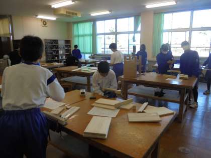 のこぎりで切ったり、カンナで削ったりして、思い思いの作品を作っています。