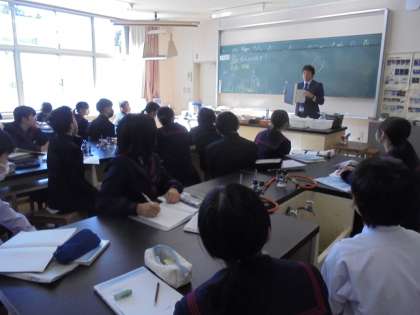 音叉や鼓膜など、空気の振動を伝えるものについて学んでいます。