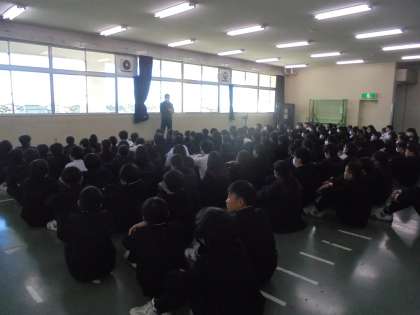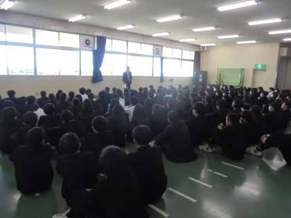 本日、緊急学年集会を開きました。内容は、SNS等の使い方についてです。