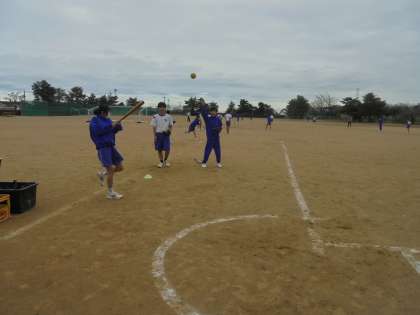 寒空の中、元気よくグラウンドでフリーバッティングをしていました。
