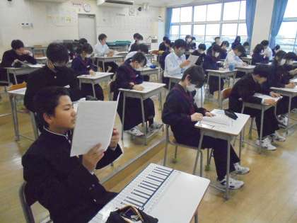 卒業式で歌う「あなたに会えて・・・」の歌詞が配布されました。歌詞が配られるなり、さっそく歌を口ずさんでいる生徒がいました。その音程はちょっとズレており、クラスの雰囲気を和やかにしていました。
