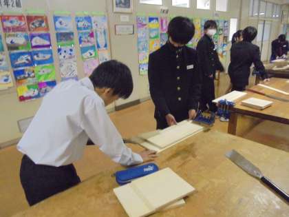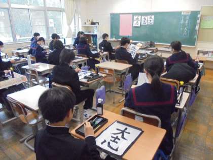 写真上:11H 国語 楷書で「大志」を書けるようになろう