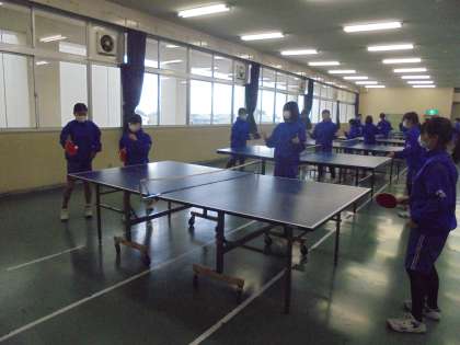 外は気温が低く曇天模様のため、室内で卓球をして盛り上がっています。