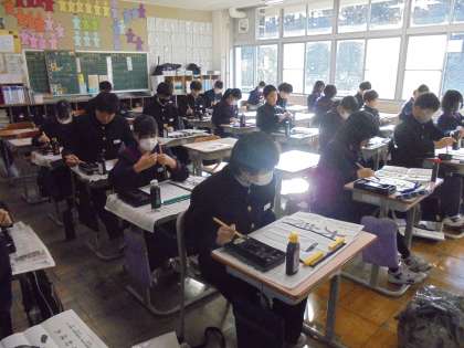 みんな心を鎮め、集中して静かに書写に取り組んでおり良い雰囲気です。